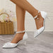 Zapatos de Tacón Alto Blanco con Lazo de Estrás y Correa en el Tobillo, Elegantes para Mujer