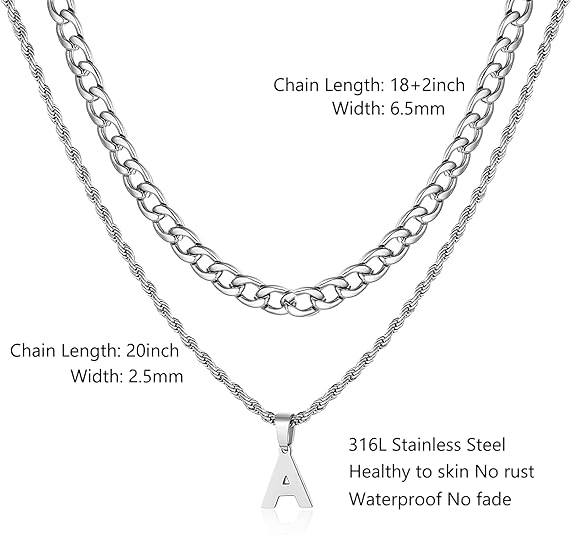Collar de letras inicial de la A a la Z en capas de SENRAN para hombres