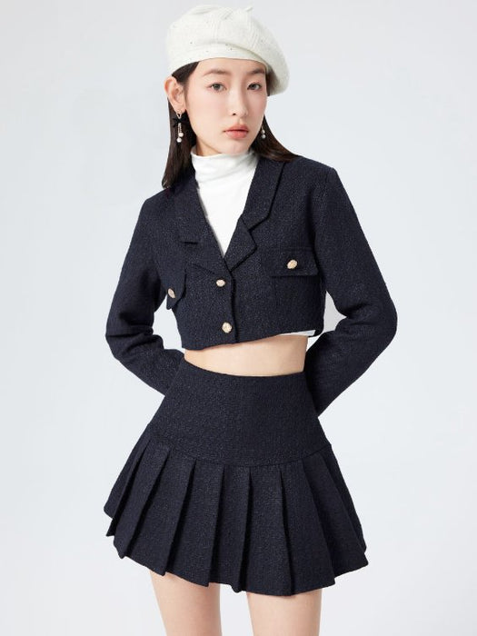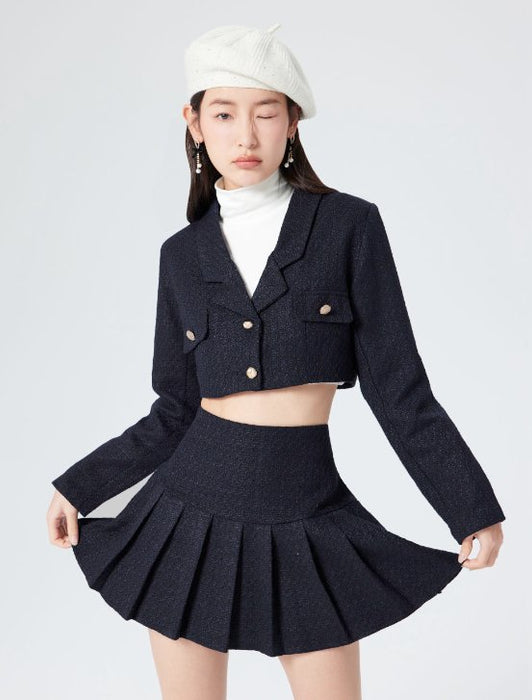 Nuestro Conjunto de Tweed Negocios como de Costumbre es el conjunto de dos piezas preppy perfecto para la temporada de invierno. Con una chaqueta ultra corta y una mini falda plisada de cintura alta, este conjunto en azul marino es ideal si buscas un conjunto chic de dos piezas. ¡Combínalo con tus tacones favoritos y medias para un atuendo sexy para una noche de cita!