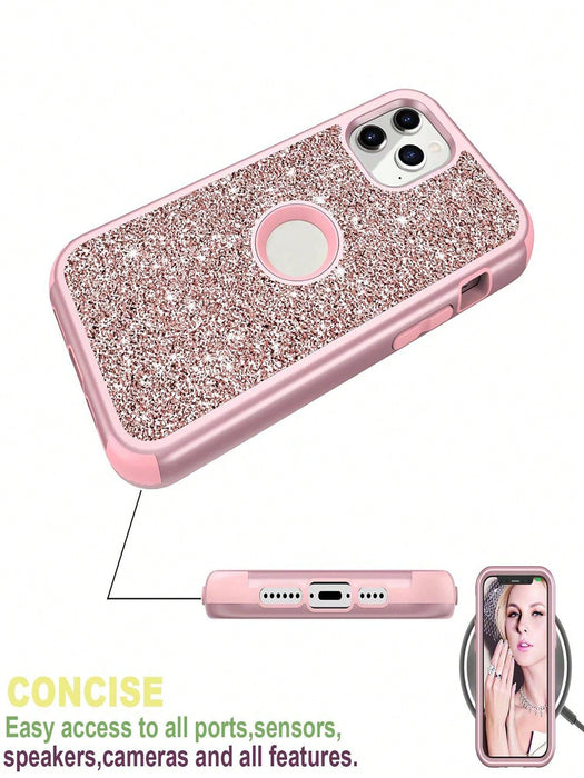 Funda para teléfono con lentejuelas, cobertura total de 360 grados, resistente a los golpes
