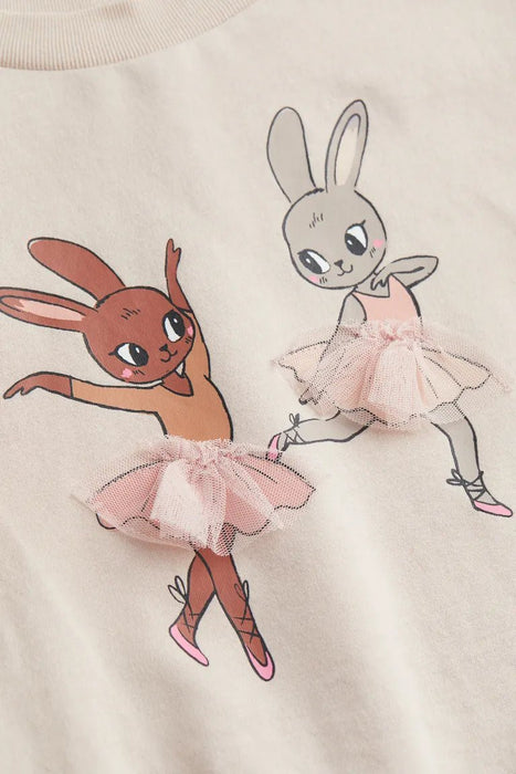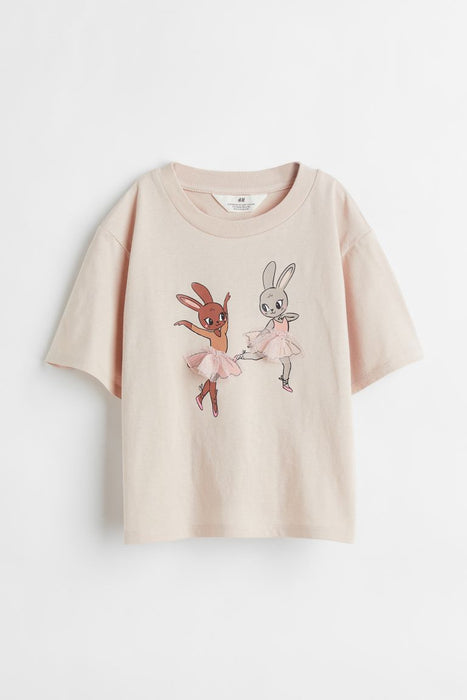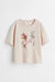 Camiseta de ajuste relajado en punto suave. Presenta estampado en la parte delantera y manga ancha. Ribete de canalé en escote y hombros caídos.