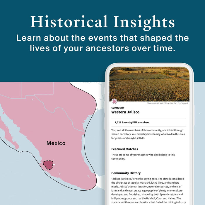 Desde sus orígenes en más de 2300 regiones globales hasta la mayor cantidad de conexiones con parientes vivos, ningún otro kit de prueba de ADN ofrece una experiencia tan única e interactiva como AncestryDNA.