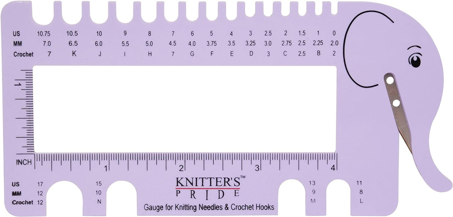Medidor de aguja, regla y cortador de hilo, todo en una herramienta versátil para todos los tejedores.