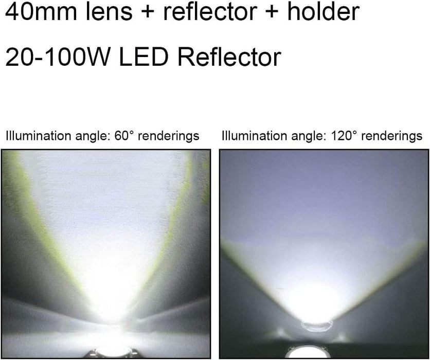 MEETOOT 1 Juego de lentes de 60 grados de 44 mm + carcasa de base de colimador reflector de 50 mm + soporte fijo para lentes de lámpara de luz LED de 20 W-100 W Kit de copa reflectora LED