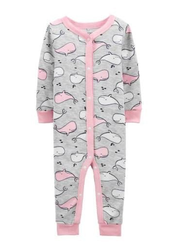 Con el pijama de algodón Carters, su bebé estará cómodo y abrigado toda la noche. Los broches permiten un cambio fácil y rápido de pañales, mientras que el suave tejido de algodón asegura una noche de sueño tranquilo. Además, el estampado de ballena le dará un toque divertido y encantador a su pequeño.