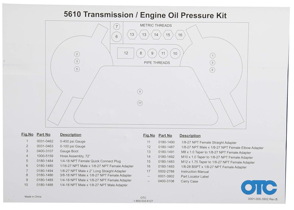 OTC 5610 probador de presión de aceite para transmisión o motor