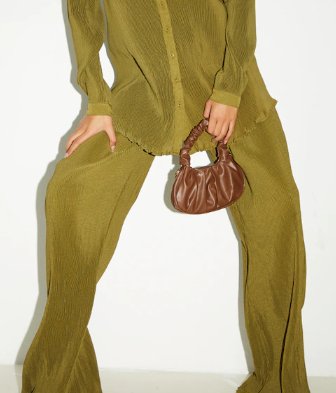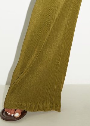 Clava las nuevas tendencias de la temporada con estos pantalones de muñeca de ensueño. Con un material plisado color oliva con un diseño de cintura alta y pierna ancha, ¿qué es lo que no te encanta? Llévalo con la camisa a juego y unos mules de tacón para asegurarte de llamar la atención.