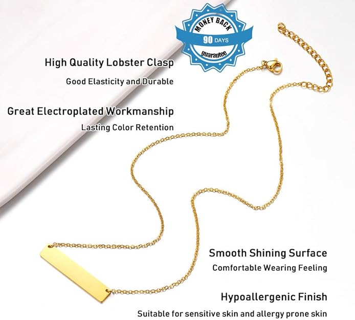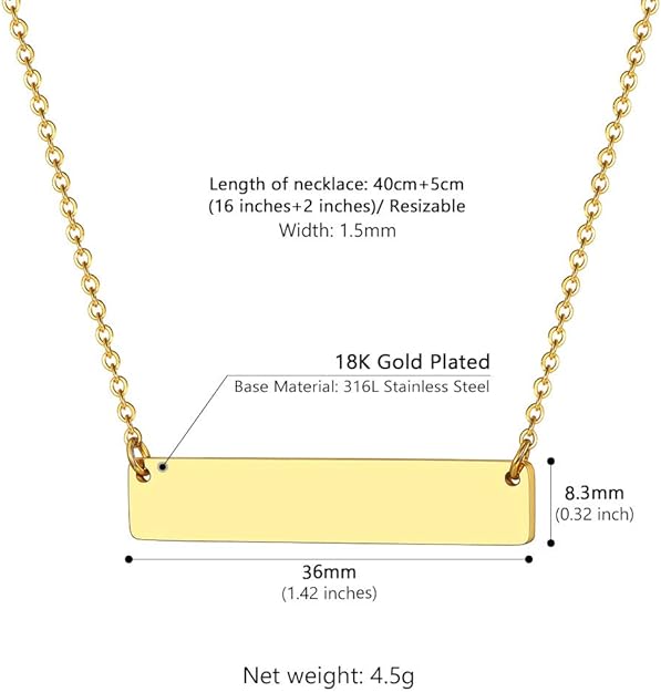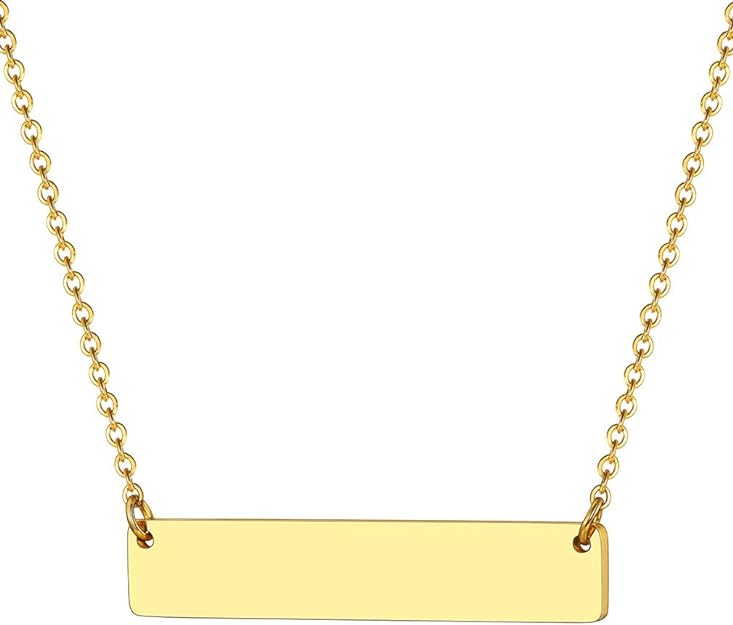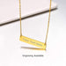 - Este collar de barra minimalista se puede personalizar con nombres, iniciales, fechas, frases, números romanos o coordenadas.