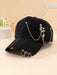 Gorra de béisbol con un toque urbano y moderno. Cuenta con decoraciones de anillo y cadena que le dan un estilo callejero distintivo. Perfecta para completar tu look casual con personalidad. Material resistente y cómodo para usar todo