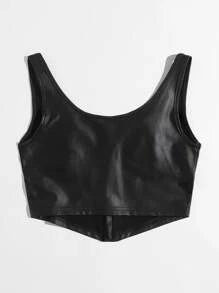 SHEIN ICON Camiseta sin mangas de PU con gancho y ojo bajo asimétrico