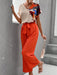 Conjunto versátil que combina un top de manga murciélago con estampado geométrico moderno y pantalones de pernera ancha. El diseño de mangas amplias proporciona comodidad y movimiento, mientras que el patrón geométrico añade interés visual a tu look. Los pantalones de corte relajado ofrecen una silueta contemporánea ideal para crear outfits casuales o semi-formales. Perfecto para quienes buscan prendas que equilibren estilo y practicidad en su guardarropa diario.