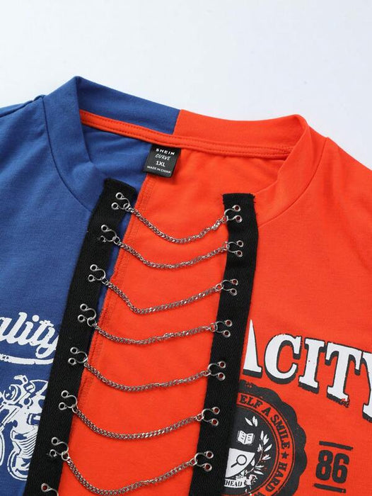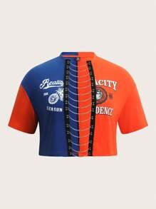 SHEIN SXY Camiseta con estampado de motocicleta y letra de hombros caídos con cadena