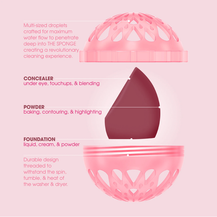 ¡La Primera Esponja De Maquillaje Lavable A Máquina! Esta esponja está especialmente formulada utilizando la misma tecnología única "WashTech" que The Original MakeUp Eraser para borrar el maquillaje de la esponja con un simple lavado a máquina.